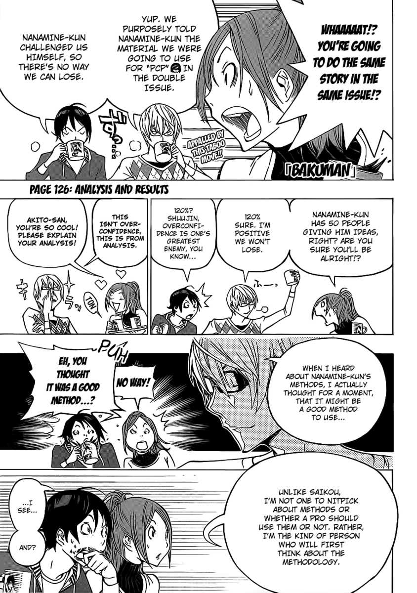 Analysis and Results (分析と結果 Bunseki to Kekka) is the name of the 126th chapter of the Bakuman Manga. It was published in Weekly Shōnen Jump on April 4, 2011.